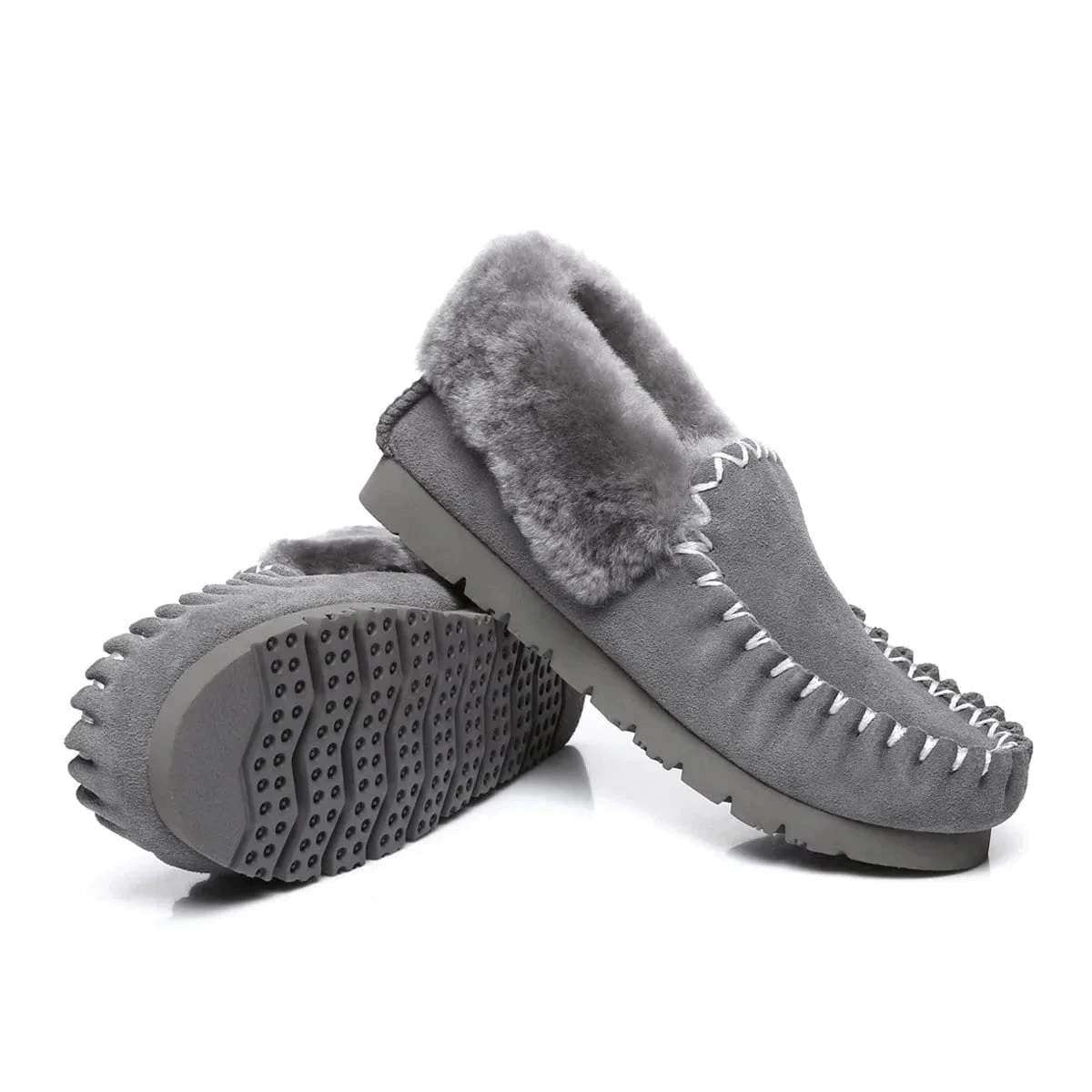 Indulge in the luxurious softness of our UGG Premium Traditional Moccasin Slippers, designed to envelop your feet in pure comfort. Made from genuine sheepskin, these slippers offer a sumptuous feel that you’ll love to sink your feet into. The natural insulating properties of sheepskin ensure that your feet stay toasty and cosy, providing an indulgent sanctuary for relaxation and lounging around the house.